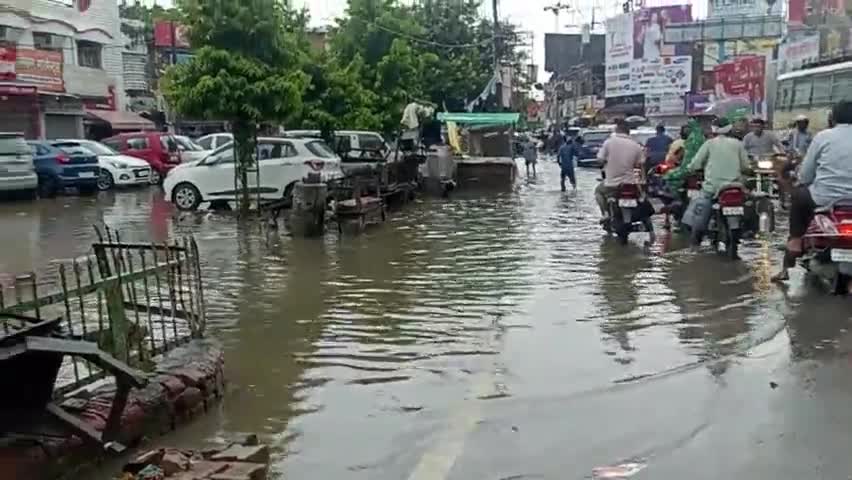 बाराबंकी मे मूसलाधार बारिश से जमुरिया नाला उफनाया।शहर के कई मोहल्ले डूबे।छाया चौराहे तक जमुरिया नाले का पानी आया#बारिश