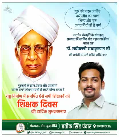 भारत के पूर्व राष्ट्रपति डॉ. सर्वपल्ली राधाकृष्णन जी की जयंती पर कोटिशः नमन व शिक्षक दिवस की बधाई