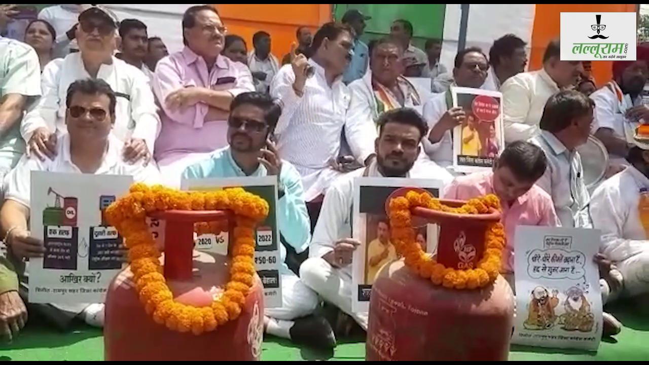 रायपुर: "मंहगाई मुक्त भारत" बनाने कांग्रेस का देशव्यापी आंदोलन, गैस सिलेंडर को माला पहनाकर किया मंहगाई का किया विरोध. #cg #news