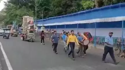 বৃষ্টির মধ্যে আলিপুরদুয়ারে প্রতিমা নিরঞ্জন এর জন্য ঘাটে নিয়ে যাওয়া হচ্ছে এমনটাই দেখা গেল শনিবার বিকেল পাঁচটা নাগাদ। তবে বৃষ্টির করুন শোভাযাত্রা দেখা যায়নি প্রতিবার সঙ্গে। জেলা শহরের বিভিন্ন প্রান্তে শনিবারেও চলবে প্রতিমা নিরঞ্জন। তবে প্রতিমা নিরঞ্জন কে কেন্দ্র করে কোনরকম অপ্রীতিকর ঘটনা যেন না ঘটে তার জন্য ঘাটে পুলিশ রয়েছে।