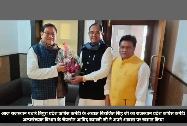 त्रिपुरा प्रदेश कांग्रेस कमेटी के अध्यक्ष बिराजित सिंह आबिद कागज़ी के जयपुर आवास पर