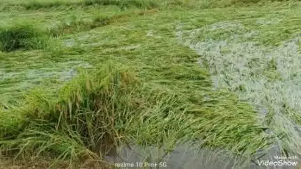 लालगंज क्षेत्र में शुक्रवार को शुरू हुई तेज हवाओं संग बारिश धान की फसलों पर आफत बनकर टूट पड़ी। यह बारिश शनिवार दोपहर बाद 3:00 बजे तक चलती रही। क्षेत्र के बसुहरा गांव में बड़े पैमाने पर खेतों में धान की फैसले गिरकर धराशाई हो गई। धान की फैसले गिरने से किसानों के माथे पर चिंता की लकीरें व्याप्त हो गई है। इस वर्ष समय से बारिश होने के कारण धान की फसल अच्छी थी।