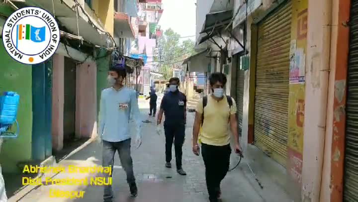 NSUI बिलासपुर ईकाई घुमारवीं बाजार, पुलिस थाना, पोस्ट ऑफिस व बस स्टैंड में sainitisation करते हुए | @nsui_india