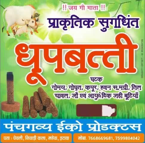 गाय के गोबर से बनी सुगंध धूप बत्ती एवं गौमय दीपक खरीदने के लिए संपर्क करें। 7599804042