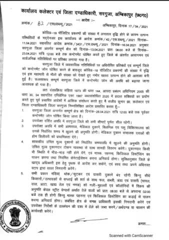 #अंबिकापुर मे कोरोना के बढते चरण को मद्देनजर रखते हुए कलेक्टर संजीव कुमार झा ने 26 अप्रेल तक बढाया लोकडाउन ।