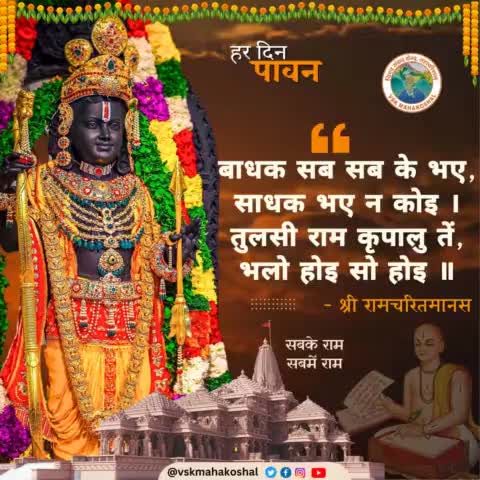 !! हर दिन पावन !! "बाधक सब सब के भए, साधक भए न कोइ। तुलसी राम कृपालु तें, भलो होइ सो होइ॥" - श्री रामचरितमानस