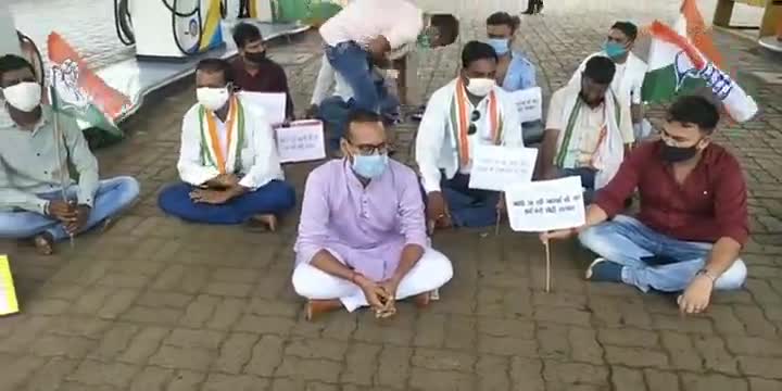 तिल्दा: बढते पेट्रोल डीज़ल के मूल्य को लेकर रजत कश्यप व साथियो द्वारा किया गया प्रदर्शन