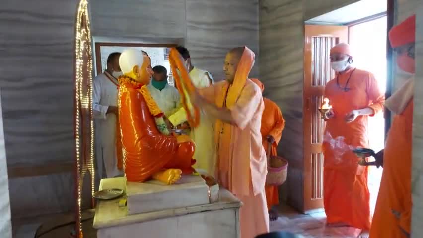 गुरु पूर्णिमा के पर योगी जी ने गोरखनाथ मंदिर में अपने गुरु का पूजा अर्चन के बाद गौशाला में गायों को गुड़ भी खिलाया।