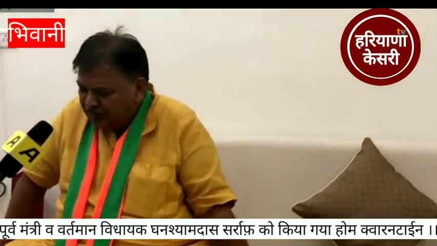 भिवानी: भिवानी विधायक घनश्याम दास सर्राफ़ को किया गया होम क्वारनटाइन ।। सर्राफ़ के निजी सहायक पाए गए कोरोना पॉजिटिव ।।