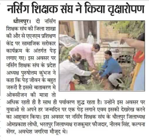 दी नर्सिंग टीचर्स एसोसिएशन इंडिया की राजस्थान शाखा की धौलपुर इकाई के पदाधिकारियों द्वारा वृक्षारोपण किया गया ।।