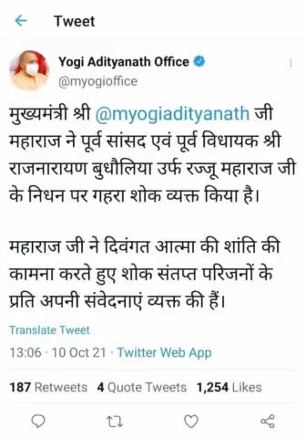 मुख्यमंत्री श्री योगी आदित्यनाथ ने पूर्व सांसद एवं विधायक श्री राजनारायण बिधौलिया के निधन पर गहरा शोक व्यक्त किया।