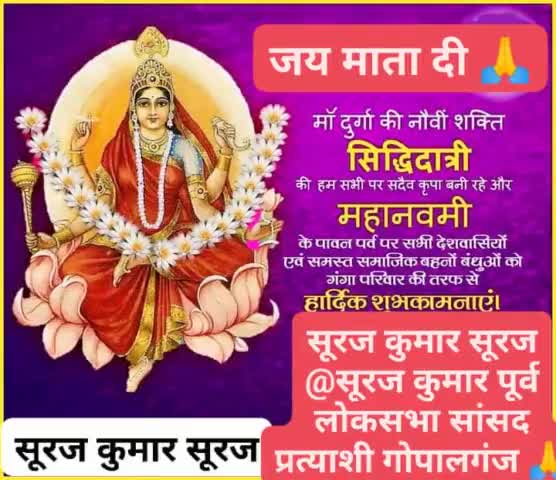मां सिद्धिदात्री....जय माता दी 🙏आदिशक्ती 🙏मां दुर्गा 🙏 :युवा नेता सूरज कुमार :सूरज कुमार सूरज पूर्व लोकसभा प्रत्याशी।