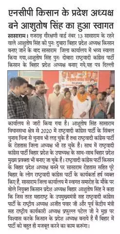 महाराष्ट्र उपमुख्यमंत्री राष्ट्रीय अध्यक्ष अजीत पवार के निर्देश पर बने k प्रदेश अध्यक्ष बिहार आशुतोष सिंह का भव्य स्वागत