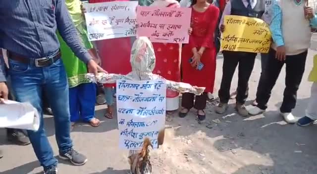 रोजगार मांग रहे छात्र-नौजवानों पर पटना में बर्बर पुलिसिया दमन के खिलाफ सीएम नीतीश कुमार का पुतला दहन।