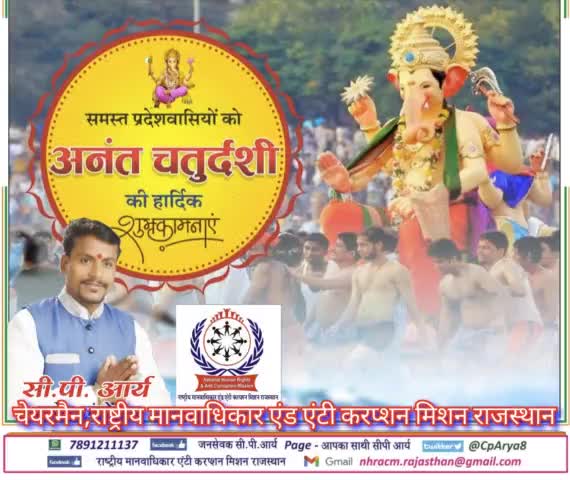 ज़मीन पर आकाश झूम के बरसे आपके ऊपर अपनों का प्यार बरसे भगवान गणेश जी से बस यही प्रार्थना हैं आप ख़ुशी के लिए नही, ख़ुशी आप के लिए तरसे अनंत चतुर्दशी की हार्दिक शुभकामनायें