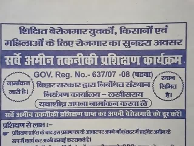 सोनबरसा: #सर्वे_अमीन_प्रशिक्षण_कार्यक्रम #अमीन बनने का सुनहरा अवसर नामांकन #सोनवर्षा_प्रखंड_परिसर में जारी है। mob -8521140639