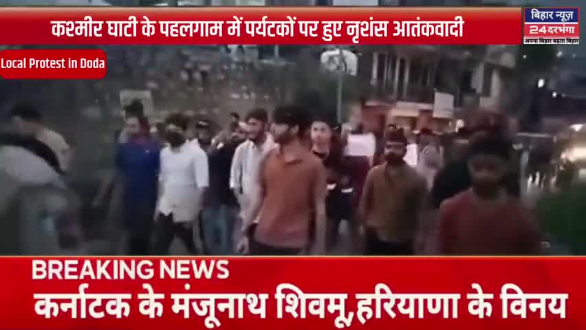 कश्मीर घाटी के पहलगाम में पर्यटकों पर हुए नृशंस आतंकवादी हमले के खिलाफ डोडा में विरोध प्रदर्शन #biharnews24darbhanga