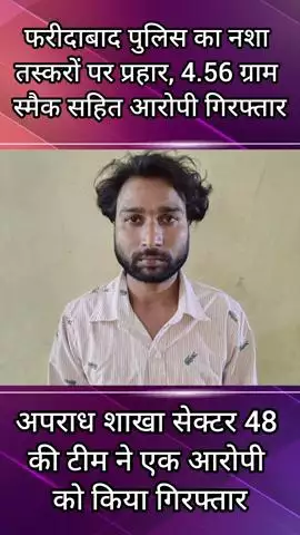 तस्वीरों में दिखाई दे रहा नजारा फरीदाबाद पुलिस उपायुक्त अपराध मुकेश कुमार के मार्गदर्शन में फरीदाबाद पुलिस की अपराध शाखाओं द्वारा नशा तस्करों पर लगातार कार्रवाही की जा रही है, इसी क्रम में अपराध शाखा सेक्टर-48 की टीम ने एक आरोपी को 4.56 ग्राम स्मैक सहित गिरफ्तार किया है। आपको बता दें आरोपी जो है नेहरू कॉलोनी का रहने वाला है और नशे का आदी है