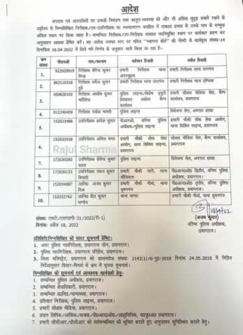 #प्रयागराज : एसएसपी अजय कुमार ने चार इंस्पेक्टर और तीन दरोगा का किया ट्रांसफ़र। अतरसुइया, दारागंज के बदले प्रभारी। #up