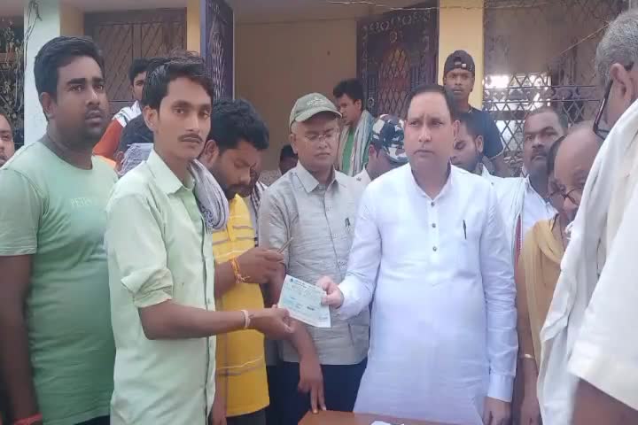 कल्याणपुर: गोपालपुर में विधानसभा उपाध्यक्ष सह स्थानीय विधायक महेश्वर हजारी की उपस्थिति में अग्नि पीड़ितों के बीच अनाज, पॉलिथीन, चेक