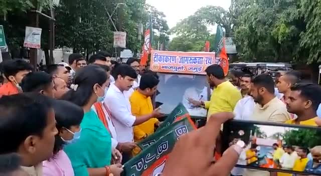 कोरोना टीका जागरूकता रथ को भाजयुमो प्रदेश अध्यक्ष श्री दुर्गेश सिंह जी एवं सदर विधायिका सुश्री श्रेयासी सिंह जी की गया