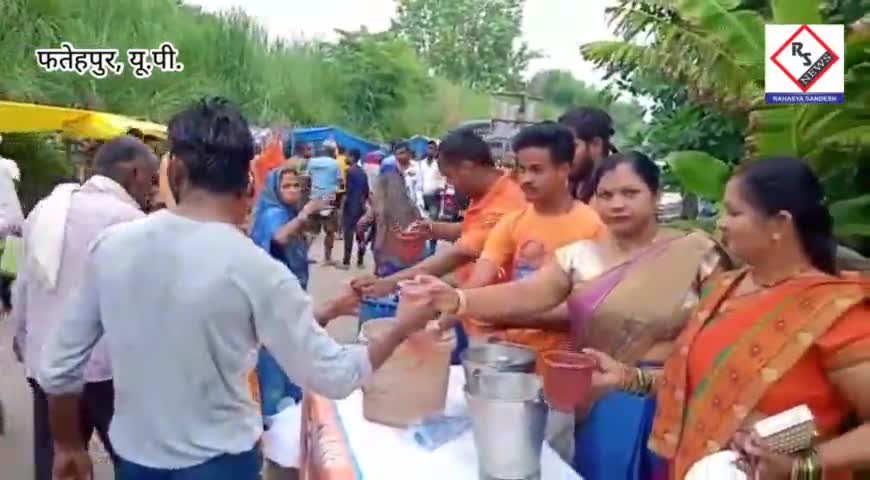 फतेहपुर : सावन के दूसरे सोमवार के अवसर पर रहस्य संदेश मीडिया ग्रुप द्वारा भिटौरा स्थित ओम घाट पर वितरित किया गया शरबत