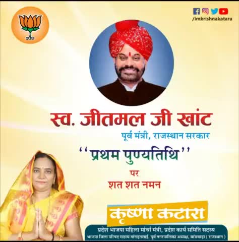 हमारे सब के आदर्श रहे स्व. जीतमल जी खांट पूर्व मंत्री, राजस्थान सरकार की प्रथम पुण्यतिथि पर शत शत नमन।🙏🙏