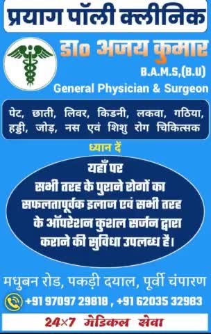 उत्तम इलाज के लिए संपर्क करें प्रयाग पॉलीक्लिनिक पकड़ीदयाल मधुबन रोड डॉ अजय कुमार