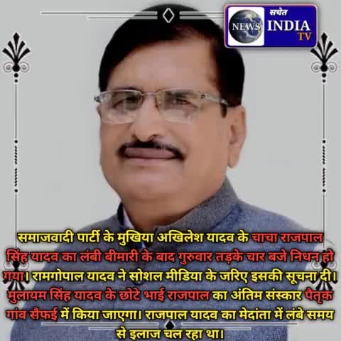 सपा मुखिया अखिलेश यादव के चाचा राजपाल सिंह यादव का निधन