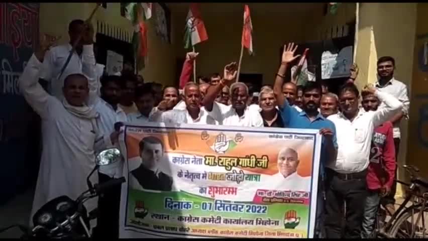 मिहोना: नगर में ब्लॉक कांग्रेस कमेटी द्वारा कांग्रेस कार्यालय से निकाली गई भारत जोड़ो पदयात्रा