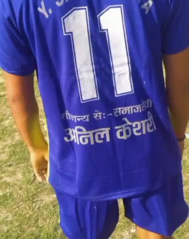 यूथ स्पोर्ट्स क्लब हाटा को युवा समाजसेवी भावी चेयरमैन प्रत्याशी अनिल केसरी द्वारा फुटबॉल खिलाड़ियों को दिया गया जर्सी।