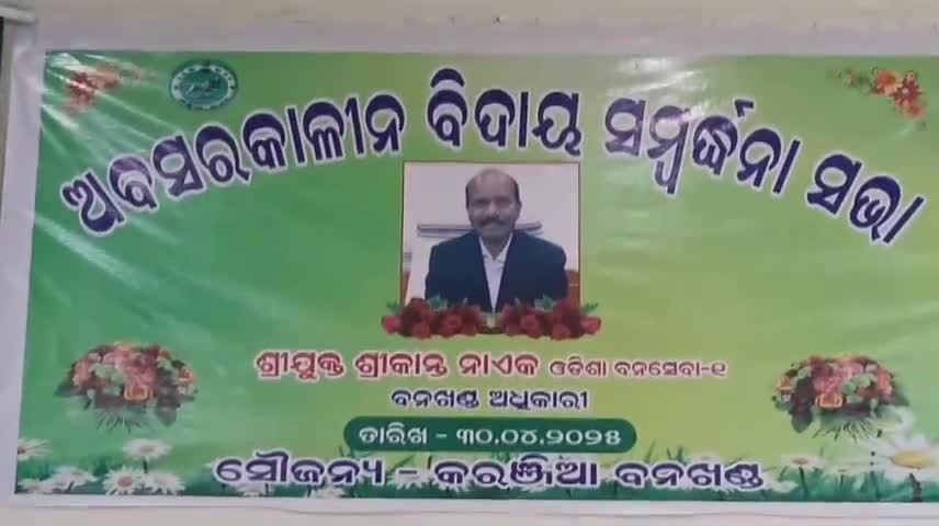 କରଞ୍ଜିଆ: କରଞ୍ଜିଆ ବନଖଣ୍ଡ କାର୍ଯ୍ୟାଳୟ ସଭାଗୃହ ଠାରେ ବନଖଣ୍ଡ ଅଧିକାରୀଙ୍କ ଅବସର କାଳୀନ ସମ୍ବର୍ଦ୍ଧନା ସଭା ଅନୁଷ୍ଠିତ