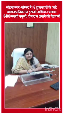 गुरुग्राम जिले के सोहना नगरपरिषद ने गुरुवार को अतिक्रमण हटाओ अभियान चलाया। परिषद की टीम ने दोपहर बाद नगरपरिषद कार्यालय से अग्रसेन चौक तक का क्षेत्र कवर किया। इस दौरान 16 दुकानदारों के चालान काटकर 6400 रुपए की वसूली की गई। नगर परिषद की कार्यकारी अधिकारी सुमनलता ने बताया कि अभियान प्रतिदिन जारी रहेगा। कस्बे को पूरी तरह अतिक्रमण मुक्त करने का लक्ष्य है।