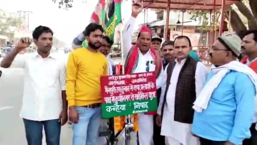 रामसनेही घाट: कुशीनगर से मैनपुरी तक साइकिल यात्रा पर निकले कन्हैया निषाद का भिटरिया में हुआ स्वागत