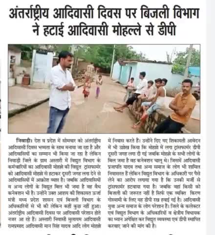 राज एक्सप्रेस दिनांक10/08/2021को ग्राम अस्तारी में कल आदिवासी दिवस पर विद्युत विभाग द्वारा काटी गई बिजली को प्रमुखता दी।