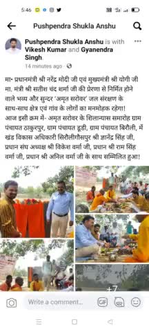 मा• प्रधानमंत्री श्री नरेंद्र मोदी जी एवं मुख्यमंत्री श्री योगी जी मा. मंत्री श्री सतीश चंद शर्मा जी की प्रेरणा से निर्मित होने वाले भव्य और सुन्दर ‘अमृत सरोवर’ जल संरक्षण के साथ-साथ क्षेत्र एवं गांव के लोगों का मनमोहक रहेगा! आज इसी क्रम