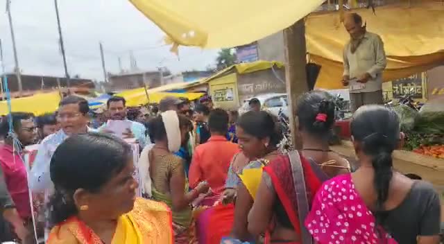 कोंडागांव: मंहगाई के खिलाफ हल्लाबोल कार्यक्रम नुक्कड़ सभा के बाद बाजार परिसर में पॉम्पलेट वितरण करते पीसीसी अध्यक्ष मोहन मरकाम ji
