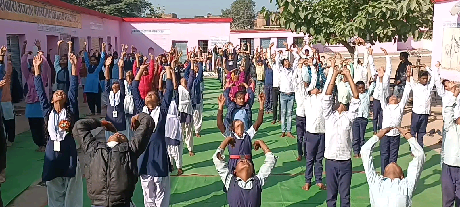 घुवारा: सामूहिक सूर्य नमस्कार एवं प्रार्थना माध्यमिक विद्यालय एवं हाई सेकेंडरी स्कूल रामटौरिया