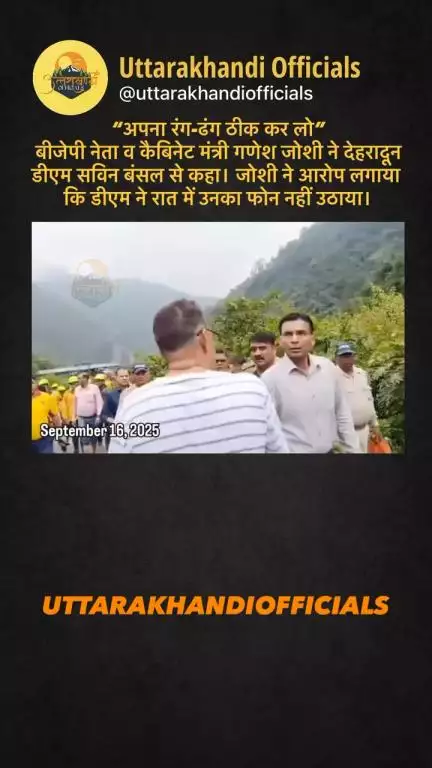 “अपना रंग-ढंग ठीक करो” — मंत्री गणेश जोशी ने डीएम सविन बंसल पर रात में फोन न उठाने का आरोप लगाया।