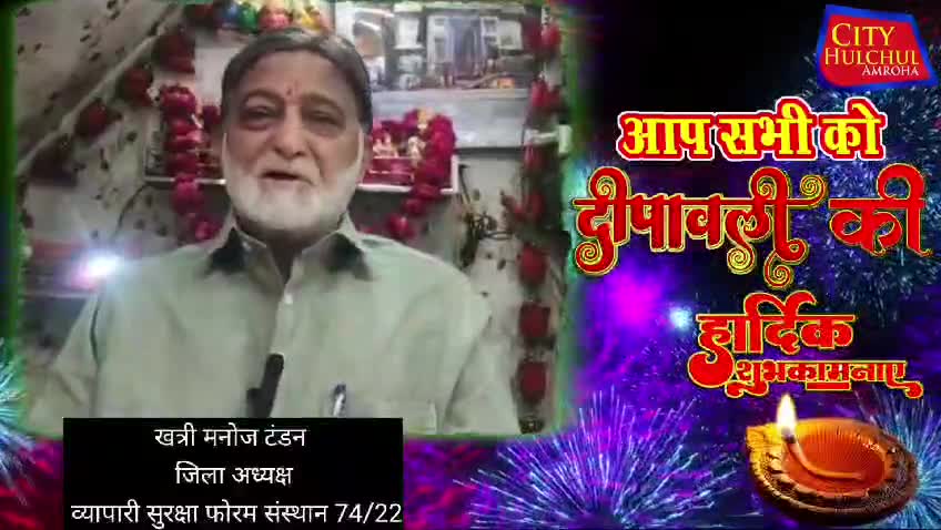 खत्री मनोज टंडन जिला अध्यक्ष व्यापारी सुरक्षा फोरम संस्थान 74 / 22 की ओर से आप सभी को दीपावली की हार्दिक शुभकामनाएं