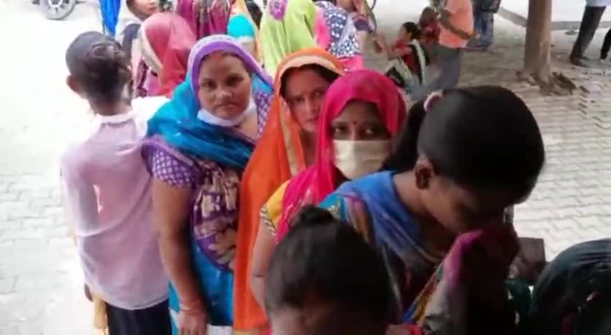 रामसनेही घाट: बनीकोडर सीएचसी पर कोविड वैक्सीनेशन के दौरान लोगों द्वारा सोशल डिस्टेंसिंग का नहीं किया गया पालन