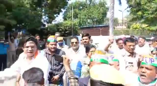 कोल: Priyanka Gandhi ji ki girftari k virodh me cente rpoint pr Vivek Bansal ji ke netritva me Congress ka virodh Pradarshan