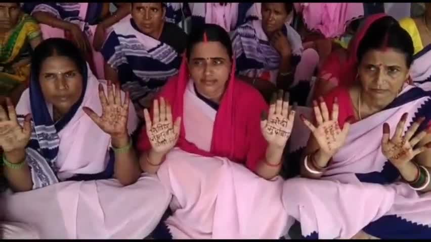अधौरा: भगवानपुर सीएचसी पर हड़ताली आशा कार्यकर्ताओं ने हाथों पर मेंहदी रचा कर दिया धरना, की नारेबाजी