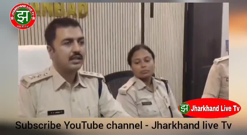 धनबाद प्रेस वार्ता को संबोधित करते हुए बाघमारा एसडीपीओ पी के सिंह। छापेमारी के दौरान बरामद सामान एवं पकड़े गए अभियुक्त