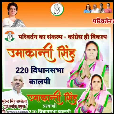 कालपी विधानसभा कांग्रेस की अधिकृत प्रत्याशी उमाकांति सिंह जी को वोट देकर भारी मतों से विजयी बनाए ।