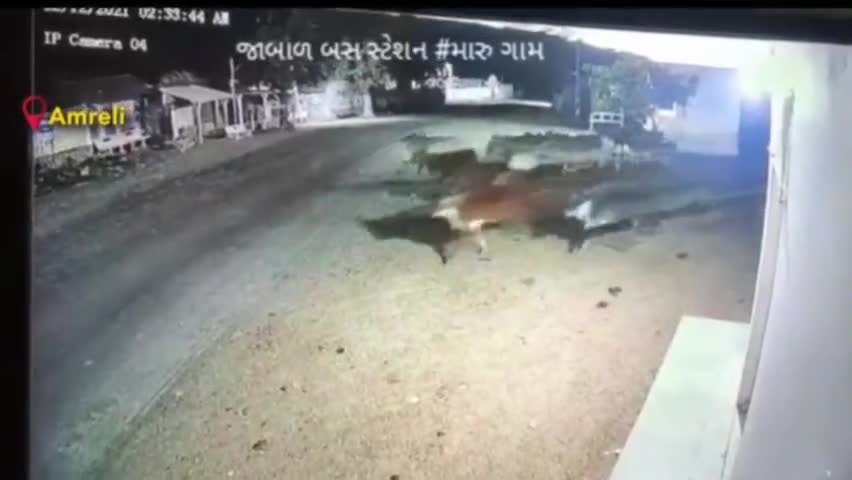गुजरात के अमरेली में गाय का शिकार करने का दिल दहला देने वाला cctv वीडियो सामने आया जिसमें कुछ गाय ने शेर को भगा दिया।