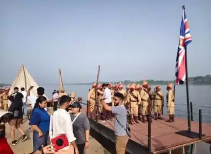 नावडाटौडी के नर्मदा घाट पर गुरुवार को वेब सीरीज़ “द रिवोल्यूशनरीज़” की शूटिंग स्थानीय युवाओं ने निभाई ब्रिटिश सैनिकों की भूमिका कसरावद। नर्मदा क्षेत्र के घाटों का प्राकृतिक सौंदर्य अब फिल्म इंडस्ट्री को भी अपनी ओर आकर्षित कर लुभा रहा है। आए दिन यहां फिल्मों और वेब सीरीज़ की शूटिंग । नर्मदा तट के प्राकृतिक सौंदर्य से घिरा नावडाटौडी घाट पर एक बार फिर लाईट