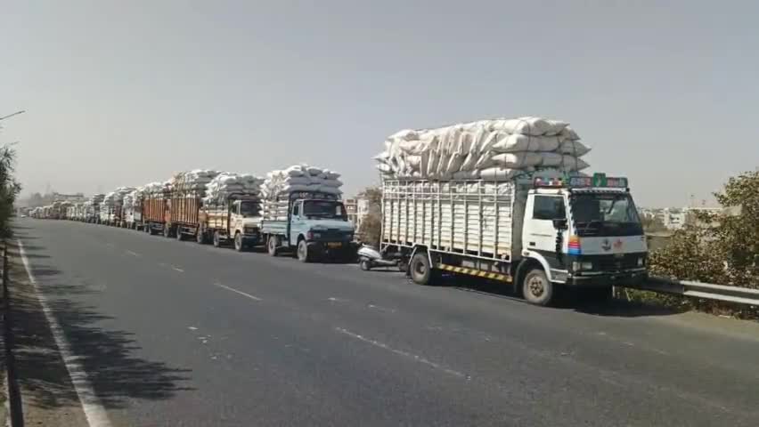 સૌરાષ્ટ્રમાં નંબર વન ગણાતા ગોંડલ માર્કેટ યાર્ડમાં ધાણાની અઢળક આવક વચ્ચે યાર્ડ ધાણાથી છલોછલ... માર્કેટ યાર્ડમાં ધાણાની આવક શરૂ કરવામાં આવતા એક જ દિવસમાં ધાણાની 2 લાખ ગુણી કરતા વધુ આવક... યાર્ડમાં ધાણાની આવક શરૂ થાય એ પહેલા જ યાર્ડ બહાર નેશનલ હાઈવે પર 3000થી વધુ વાહનોની 8 થી 9 કીમી લાંબી કતારો જોવા મળી.. ધાણાની પુષ્કળ આવક વચ્ચે હરાજીમાં ધાણાના 20 કિલોના ભાવ રૂપિયા 900/-થી લઈને 2200/-સુધીના બોલાયા..