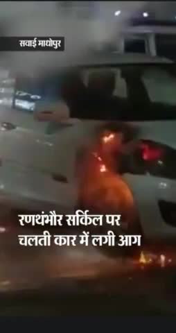 रणथंबोर सर्किल पर चलती गाड़ी में लगी आग,, लोगों ने पानी डालकर 15 मिनट में पाया काबू #घटना