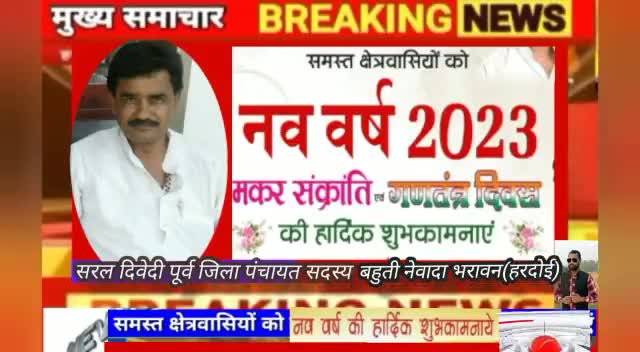 संडीला: सरल द्विवेदी पूर्व जिला पंचायत सदस्य की तरफ से समस्त क्षेत्रवासियों को नव वर्ष की हार्दिक शुभकामनाएं